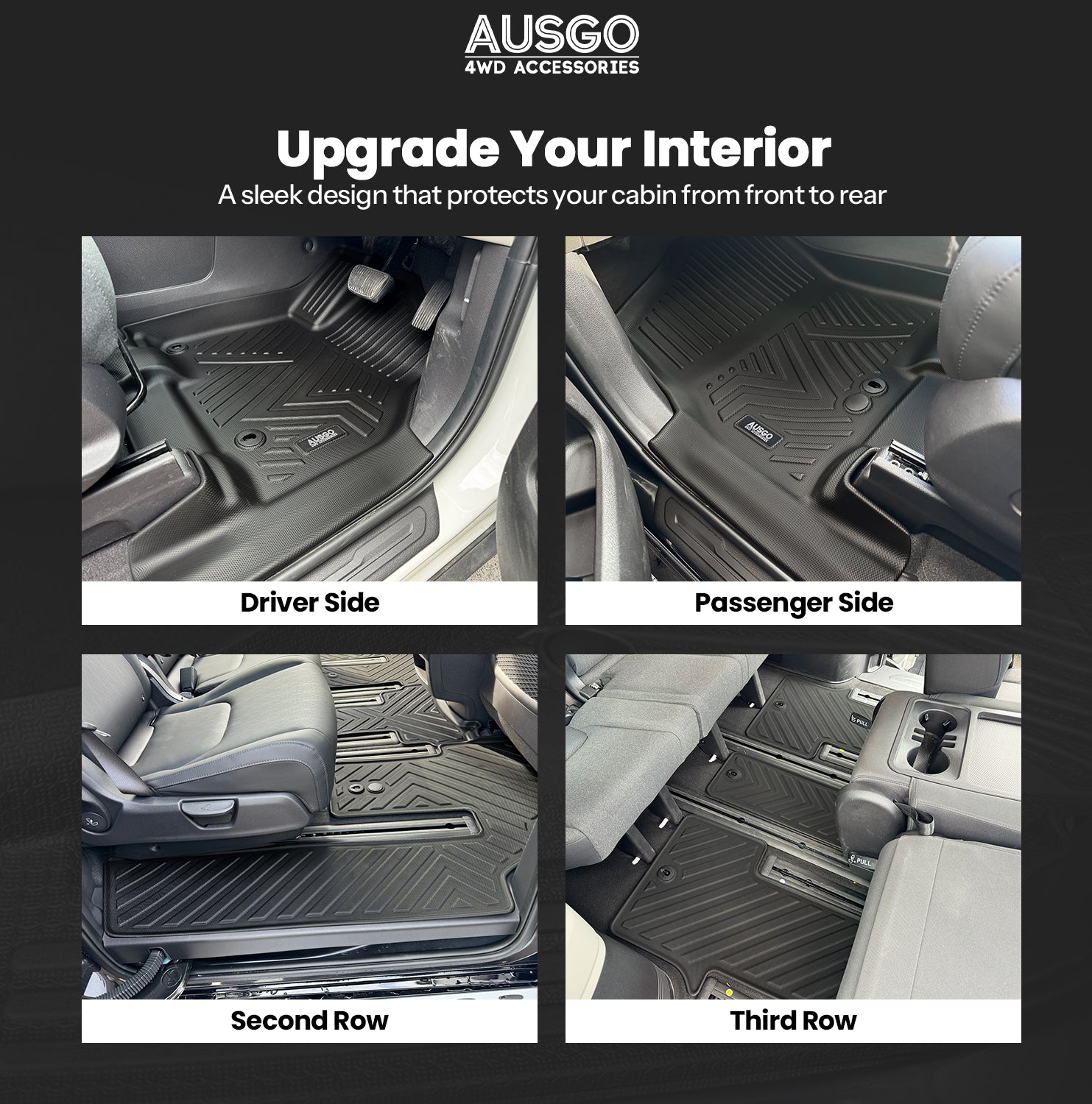 Secure & Stable: Anti-slip texture, high-grip edges, and secure retention fittings keep the mats firmly in place.