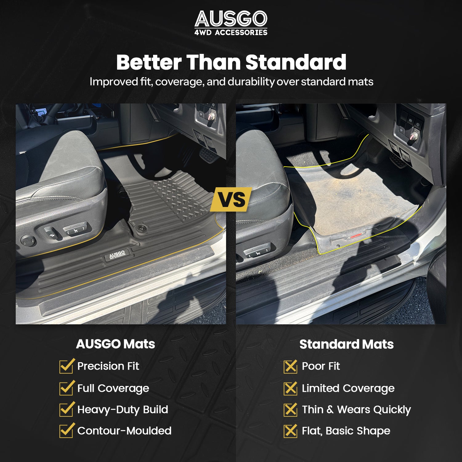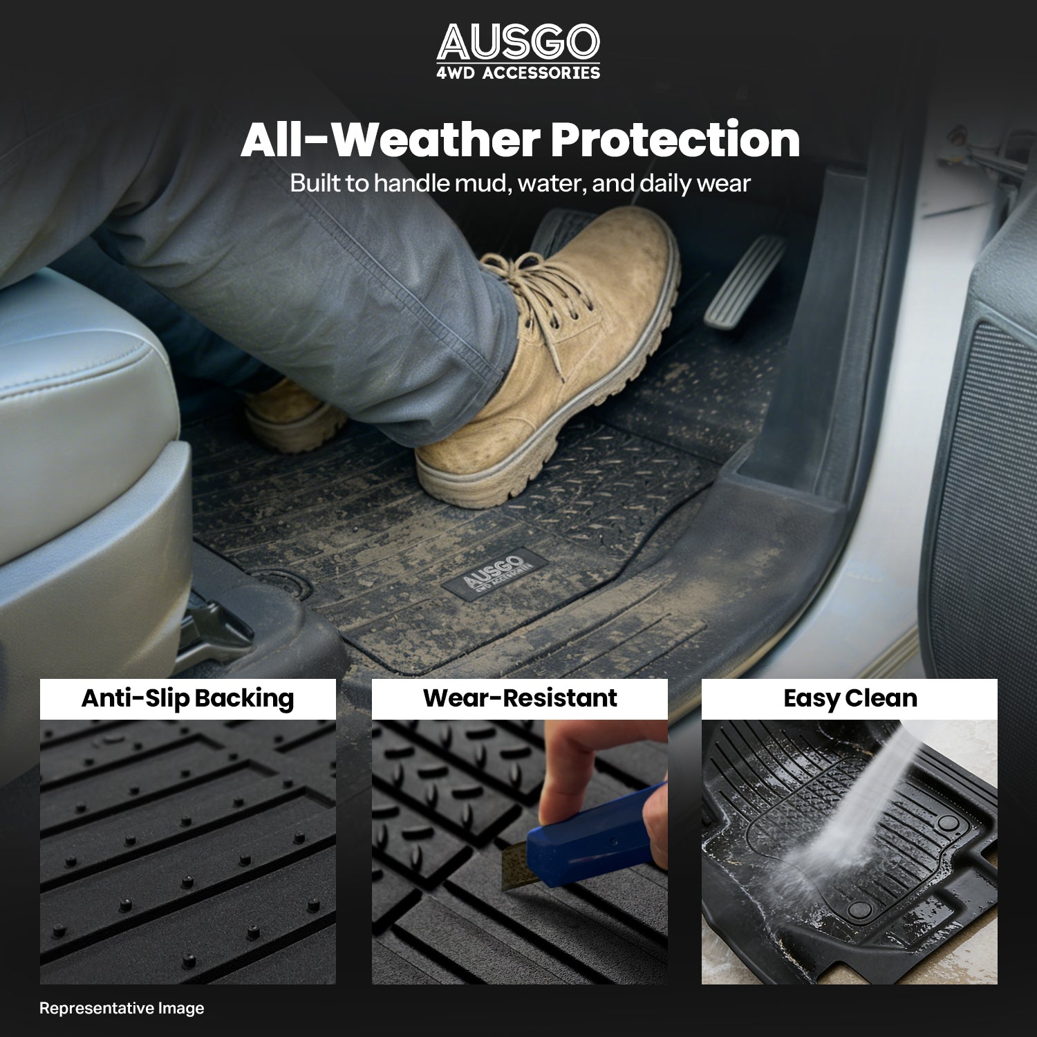 - Secure & Stable: Anti-slip texture, high-grip edges, and secure retention fittings keep the mats firmly in place.