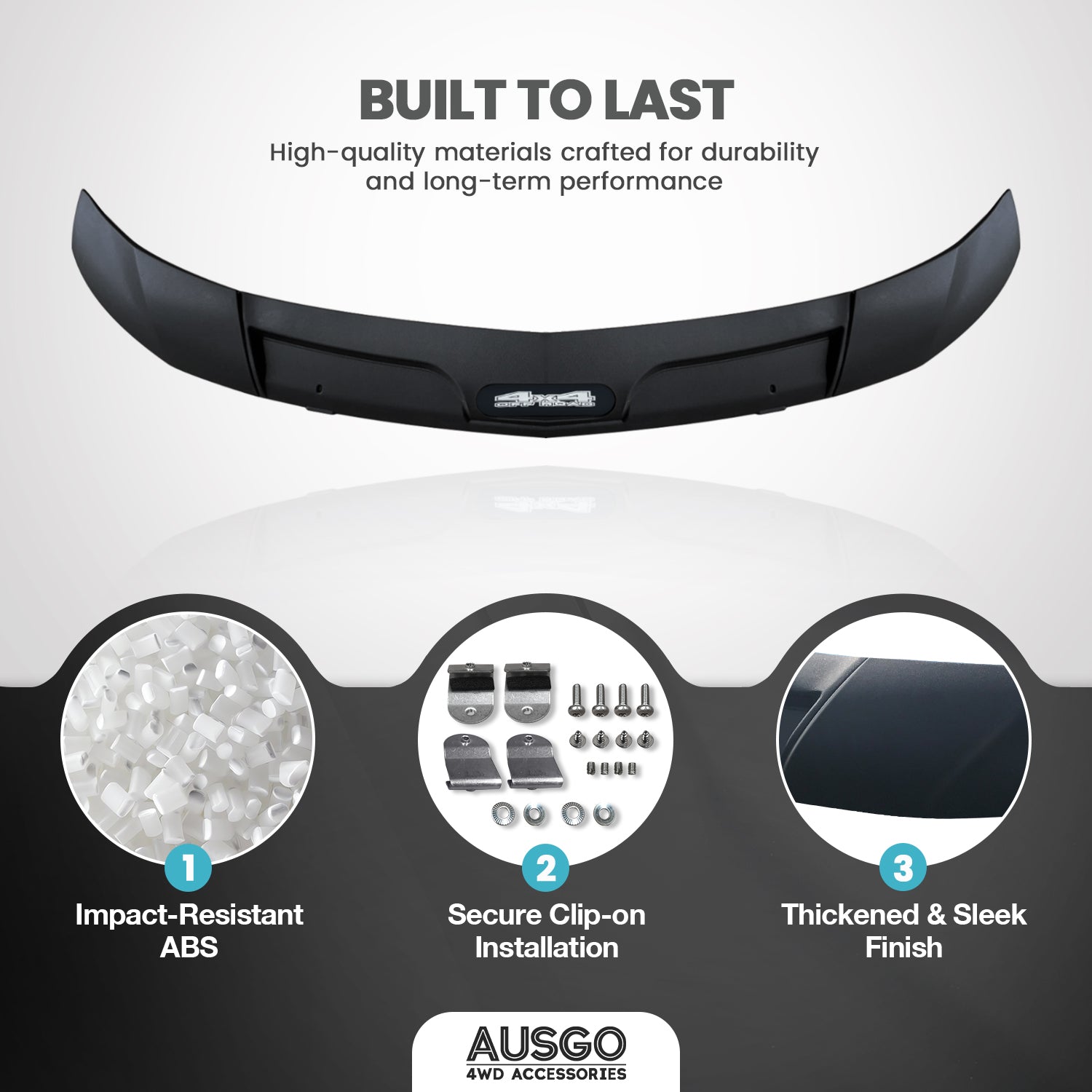 - Custom designed and injection moulded to fit the bonnet perfectly.